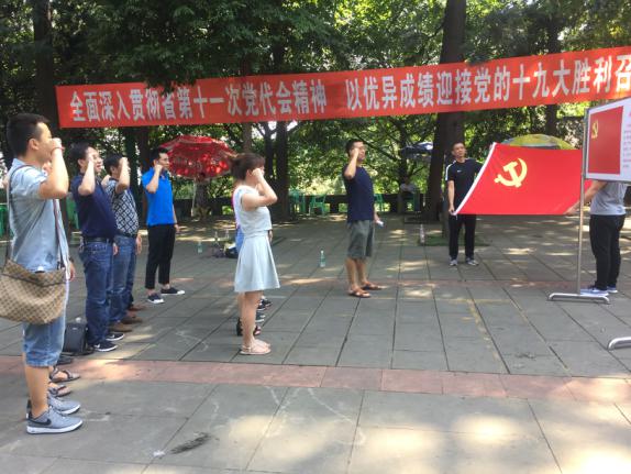 參觀完畢后,全體黨員來到趙一曼烈士雕像前,在支部書記衡洪飛的帶領(lǐng)下,對(duì)黨旗高舉右手,重溫入黨誓詞,現(xiàn)場錚錚誓言,鏗鏘有力。隨后,支部書記衡洪飛圍繞《四川省第十一次黨代會(huì)精神》為全體黨員上了堂生動(dòng)的黨課,并組織黨員積極交流參觀感受和學(xué)習(xí)省第十一次黨代會(huì)精神的心得體會(huì)。黨員高峰同志抒發(fā)了自己的心聲:通過對(duì)趙一曼烈士身前英雄事跡的回顧,想到了他當(dāng)兵時(shí)候的事,在參加越戰(zhàn)時(shí)他曾主動(dòng)提出上前線打仗,當(dāng)時(shí)他的很多戰(zhàn)友都犧牲了,但作為一名共產(chǎn)黨員他從未想過要退縮,“我們黨員是有信仰的,我們每個(gè)黨員心里是裝著國家和人民的”。