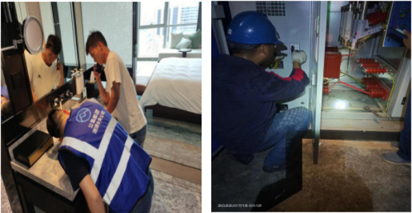 9 月 13 日上午,接到濱江國際小區(qū)二次供水水壓小的反映,共產(chǎn)黨員服務大隊主動迎戰(zhàn),由大隊隊長帶隊立即趕赴現(xiàn)場,進入濱江國際 B 區(qū)二次供水設備泵房進行搶修。搶修過程中,由于防護服氣密性較高,平時得心應手的維修操作,在此時也變得異常艱難,悶熱的防護服讓隊員們汗流浹背,衣服濕透,但他們?nèi)徊活?,全身心進行搶修工作,最終圓滿完成了搶修任務,確保小區(qū)內(nèi) 370 余戶用戶用水穩(wěn)定。